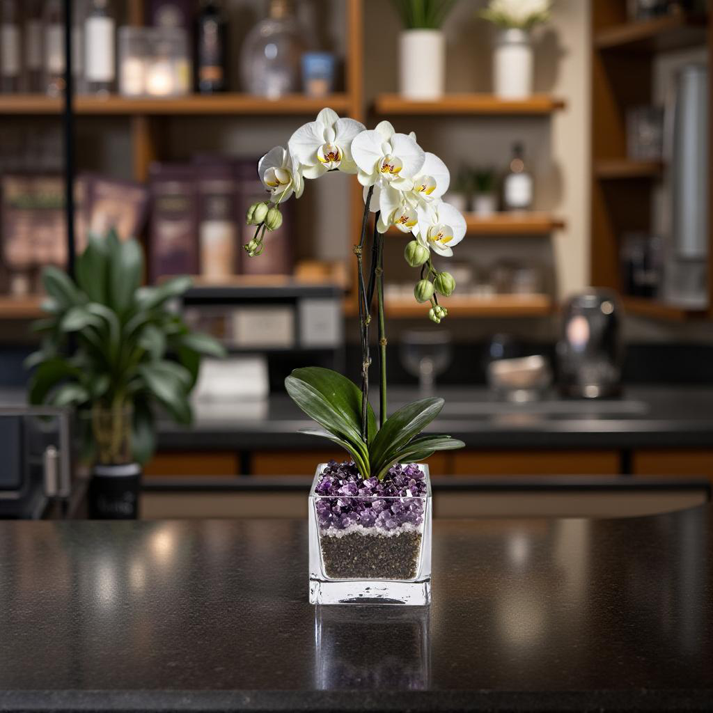 Live Double Stem Phalaenopsis Orchid Plant - Premium Indoor Flowering Plant with Crystal Accents, Easy Care Houseplant for Home Office Decor
